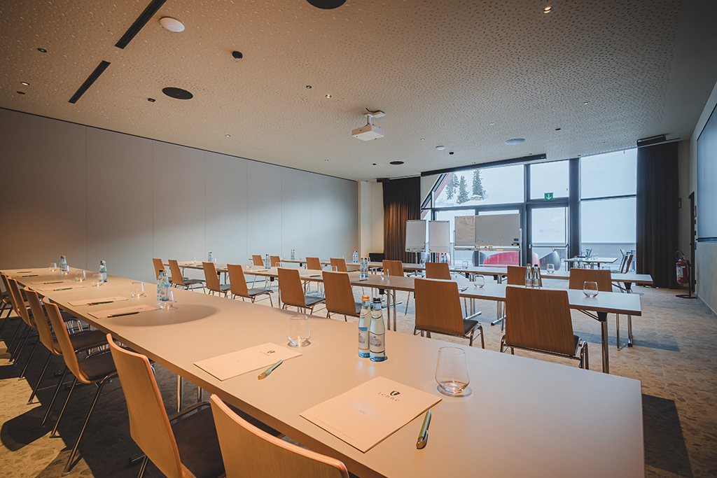 Unser Summit bietet moderne und flexible Räumlichkeiten für Business-Meetings, Konferenzen und Events jeder Art. Die Bestuhlung im Saal bietet Platz für bis zu 350 Personen und kann zusätzlich in zwei Räumlichkeiten aufgeteilt werden. Profitieren Sie von der professionellen Ausstattung und der atemberaubenden Bergkulisse, die jede Veranstaltung in ein unvergessliches Erlebnis verwandelt. Hier entsteht der Raum für Inspiration und innovative Ideen, die den Erfolg Ihres Events sicherstellen.